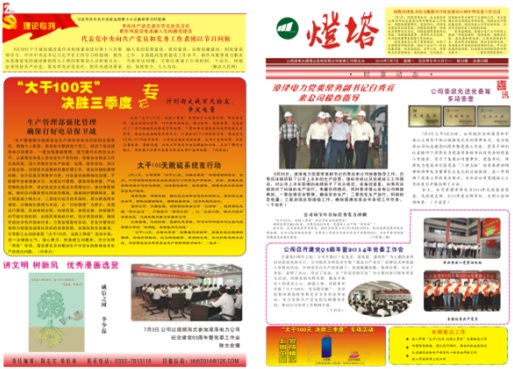 2014年6月26日,國能中電塔山維護項目部參加山西漳電大唐塔山發電公司召開的“大干100天、決勝三季度”專項活動動員會,并與業主簽訂了安全生產責任狀。項目部為此制定了各項組織、技術、安全措施。同時,項目部專題稿件“大干100天,脫硫在行動”榮登于塔山發電公司《塔山燈塔報》第23期一、二版。